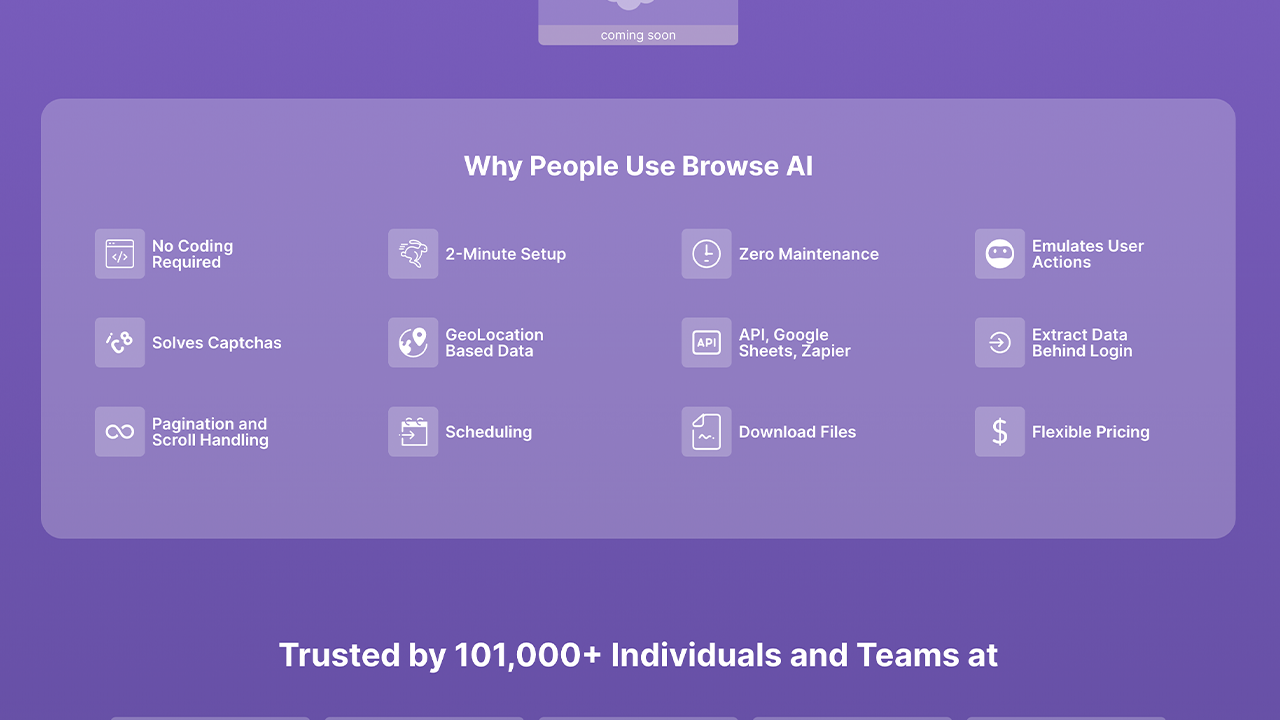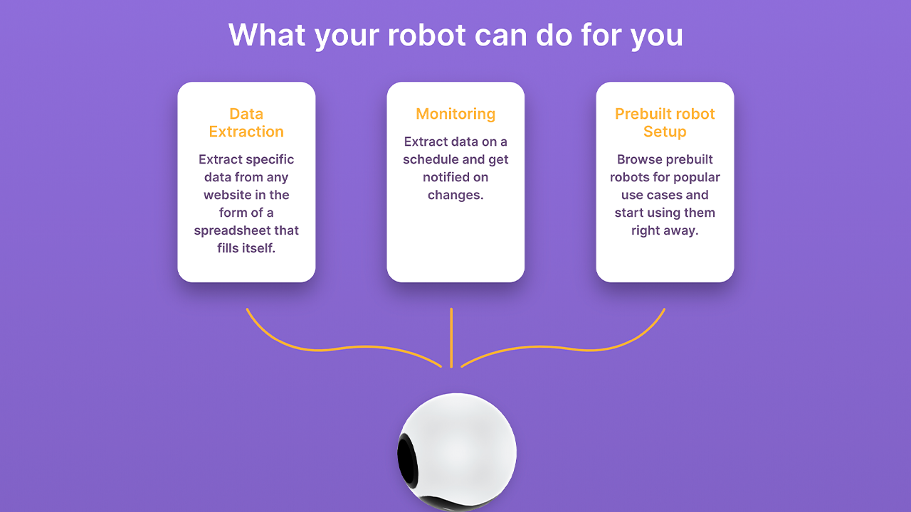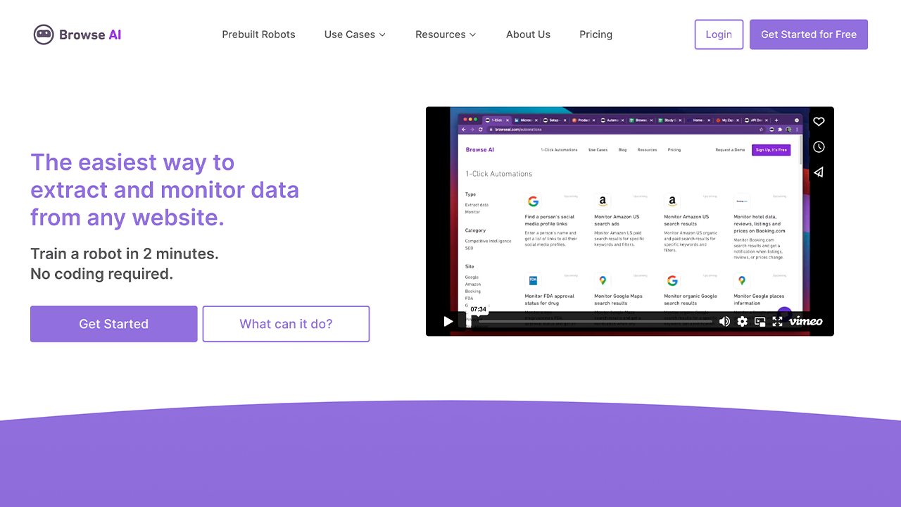 Browse AI, la manera más fácil de extraer y monitorear data de cualquier sitio Web a través de la inteligencia artificial. Entrena a tu robot en 2 minutos, sin necesidad de saber codear!