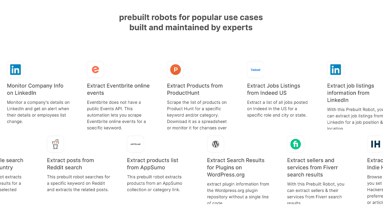 - Busque robots preconstruidos para casos de uso populares y comience a usarlos de inmediato