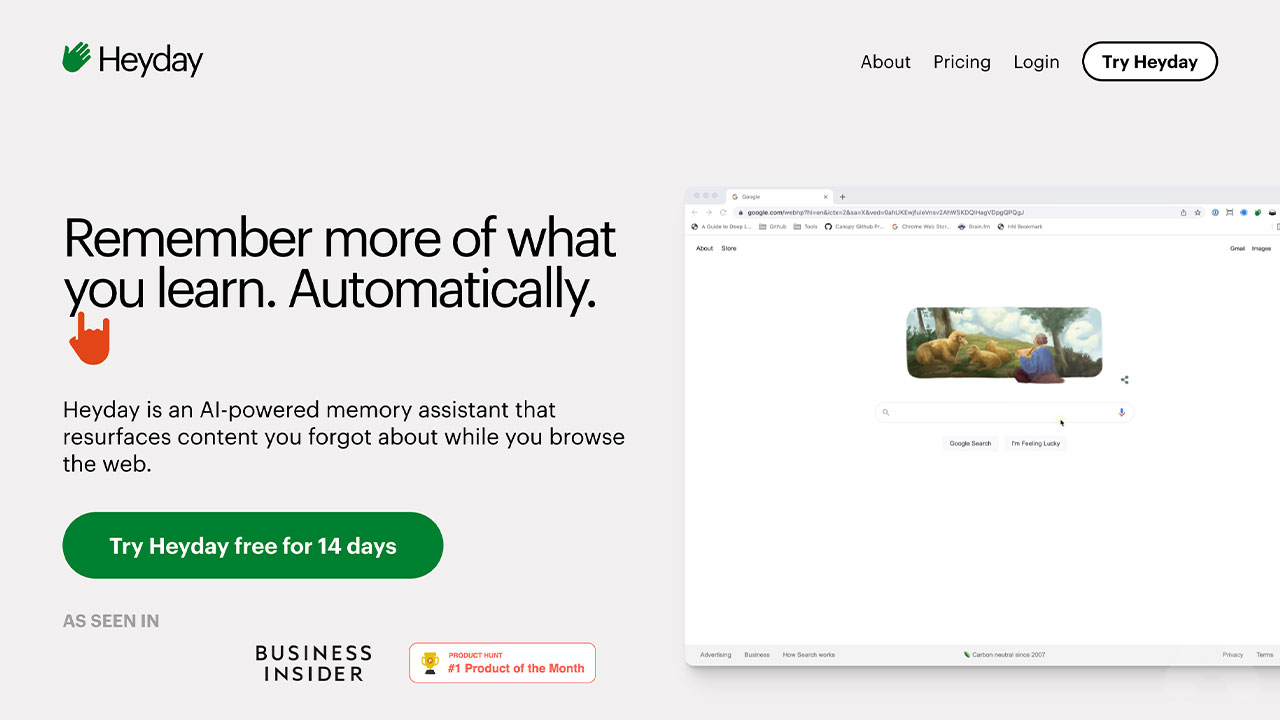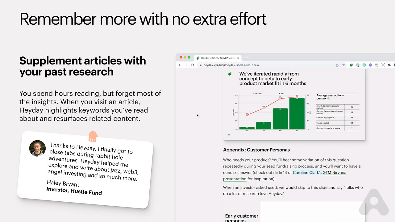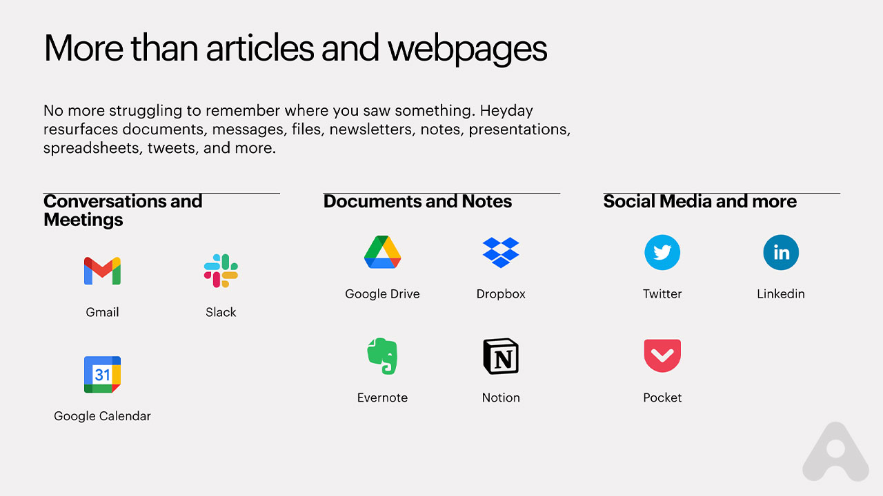 HeyDay es un asistente de memoria impulsado por inteligencia artificial diseñado para ayudar a los usuarios a recuperar y organizar el contenido web que has olvidado mientras navegabas.