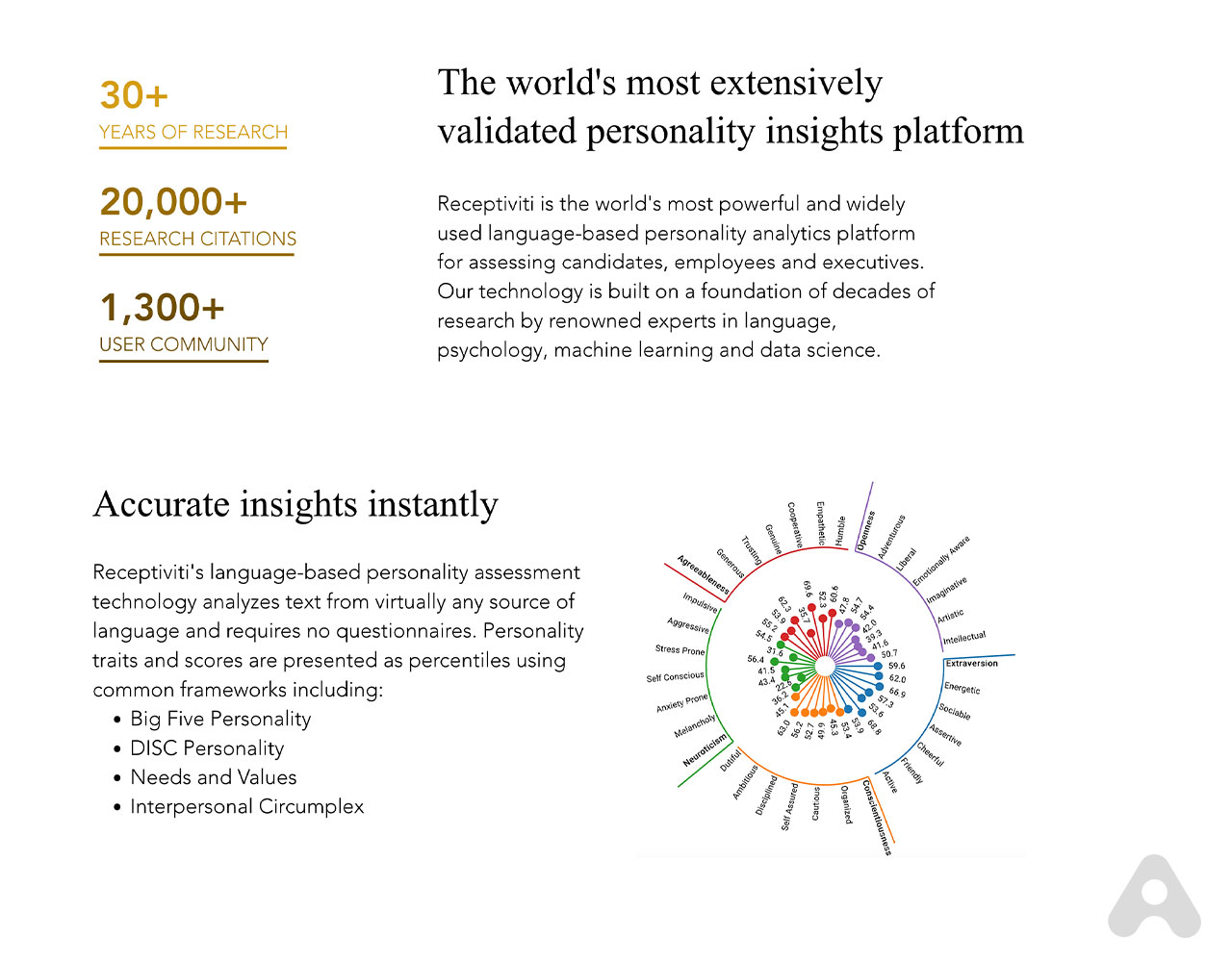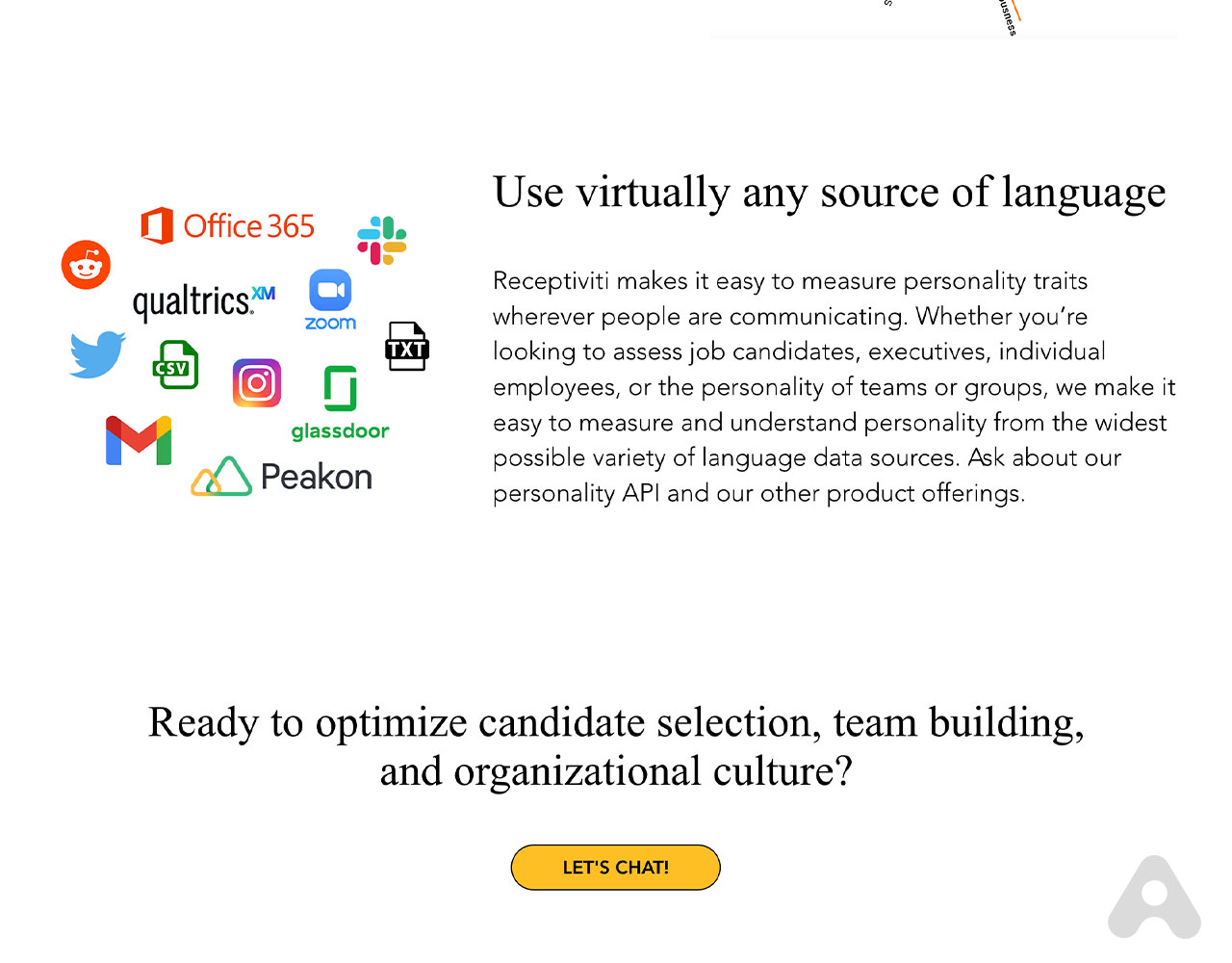- Toma de decisiones estratégicas: Al utilizar los análisis de Receptiviti, las empresas pueden tomar decisiones informadas para optimizar sus esfuerzos de marketing y ventas, mejorar las relaciones con los clientes y fomentar el crecimiento empresarial