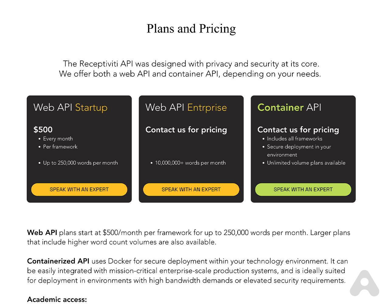 - Información impulsada por inteligencia artificial: Receptiviti utiliza algoritmos avanzados de inteligencia artificial para analizar e interpretar el sentimiento del cliente, ayudando a las empresas a comprender cómo los clientes perciben su marca, productos y servicios