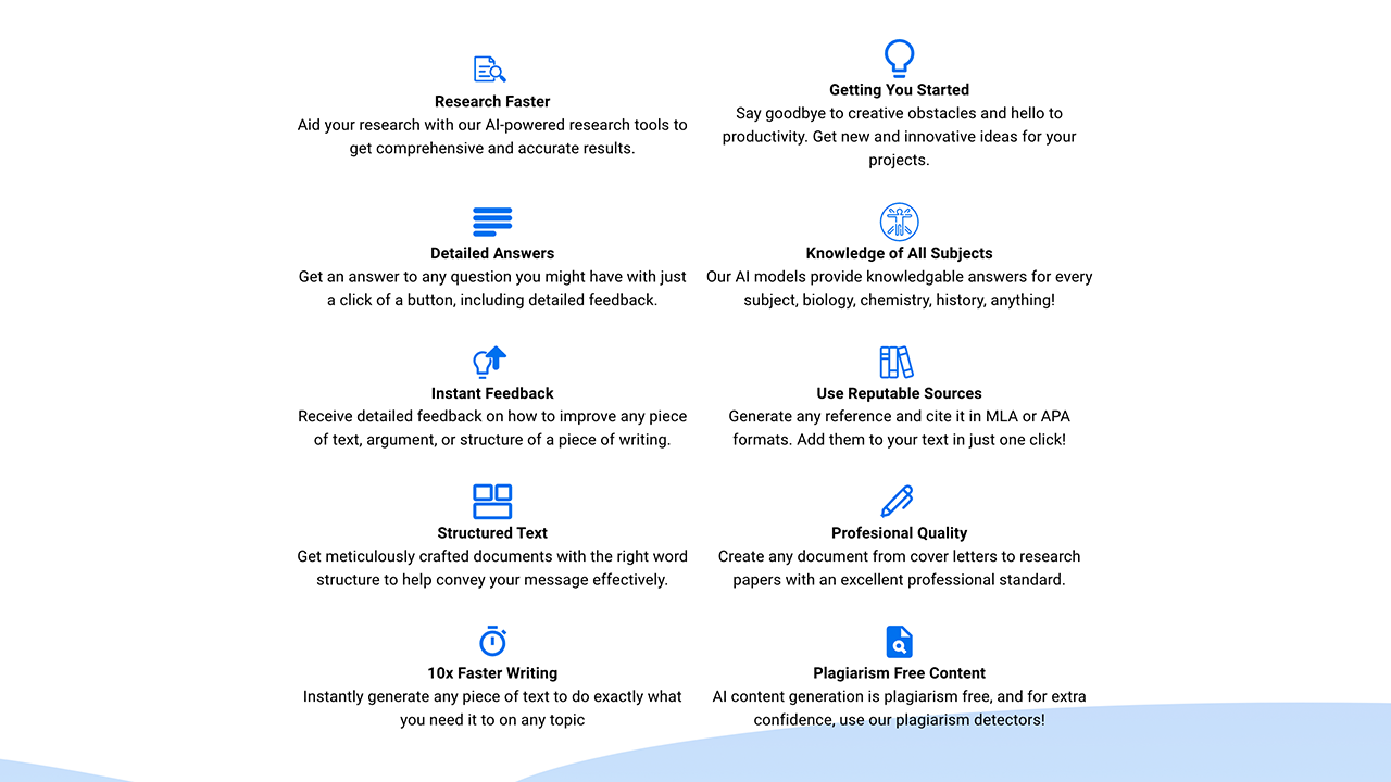 - La generación de contenido de inteligencia artificial está libre de plagio y, para mayor confianza, ¡utilice nuestros detectores de plagio!