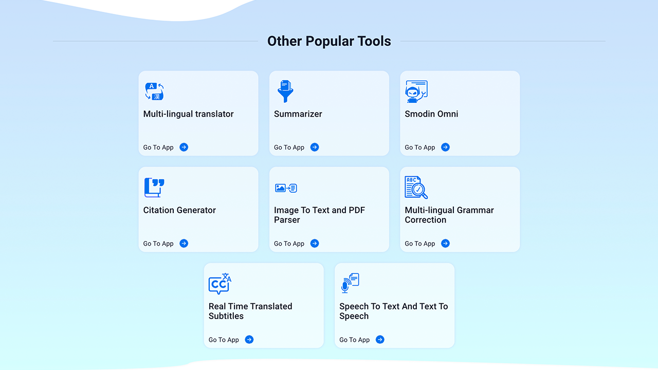 ¡Mejora tu escritura con Smodin! Utilizada por millones de estudiantes, escritores y trabajadores de internet en todo el mundo.