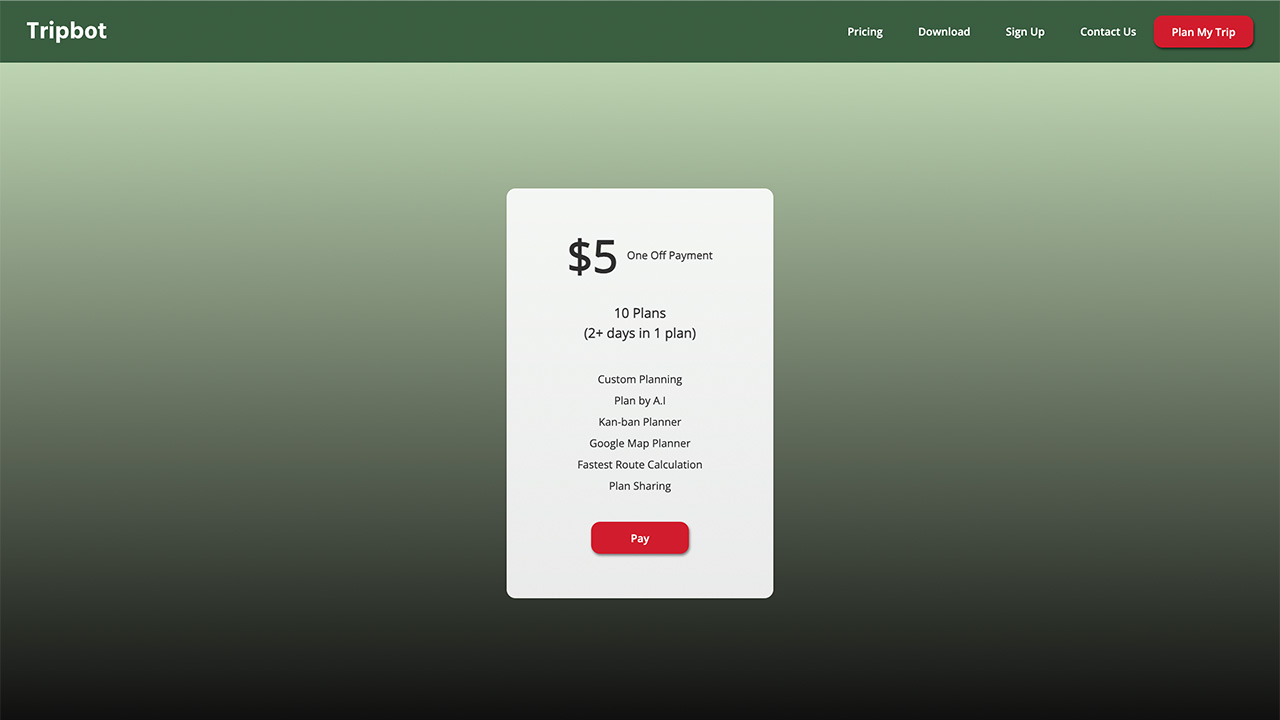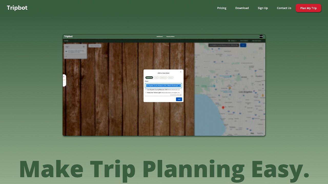 Tripbot está diseñado para simplificar tu experiencia de planificación de viajes, gracias a la inteligencia artificial. Ya sea que prefieras planificar tu viaje tú mismo o aprovechar las capacidades de ChatGPT, Tripbot te tiene cubierto. La aplicación tiene como objetivo proporcionarte las rutas más eficientes en tiempo y carbono, eliminando desvíos innecesarios.